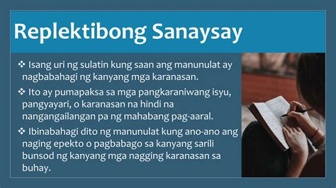 Ang Replektibong Sanaysay Tungkol Sa Buhay ay isang aklat na naglalaman ng mga tao at karanasan na nagbibigay-liwanag sa kahulugan ng buhay.